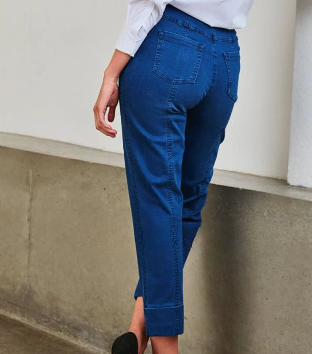 A bestselling Robell style, these Bella 09 ankle length 7/8 cuff jeans are the perfect go-to trouser. Crafted with ample stretch and an elasticate waistband they offer the perfect balance of comfort and style. These easy to pull on jeans feature a cropped length falling just about the ankle (depending on your height, they are full length if you are shorter in the leg).