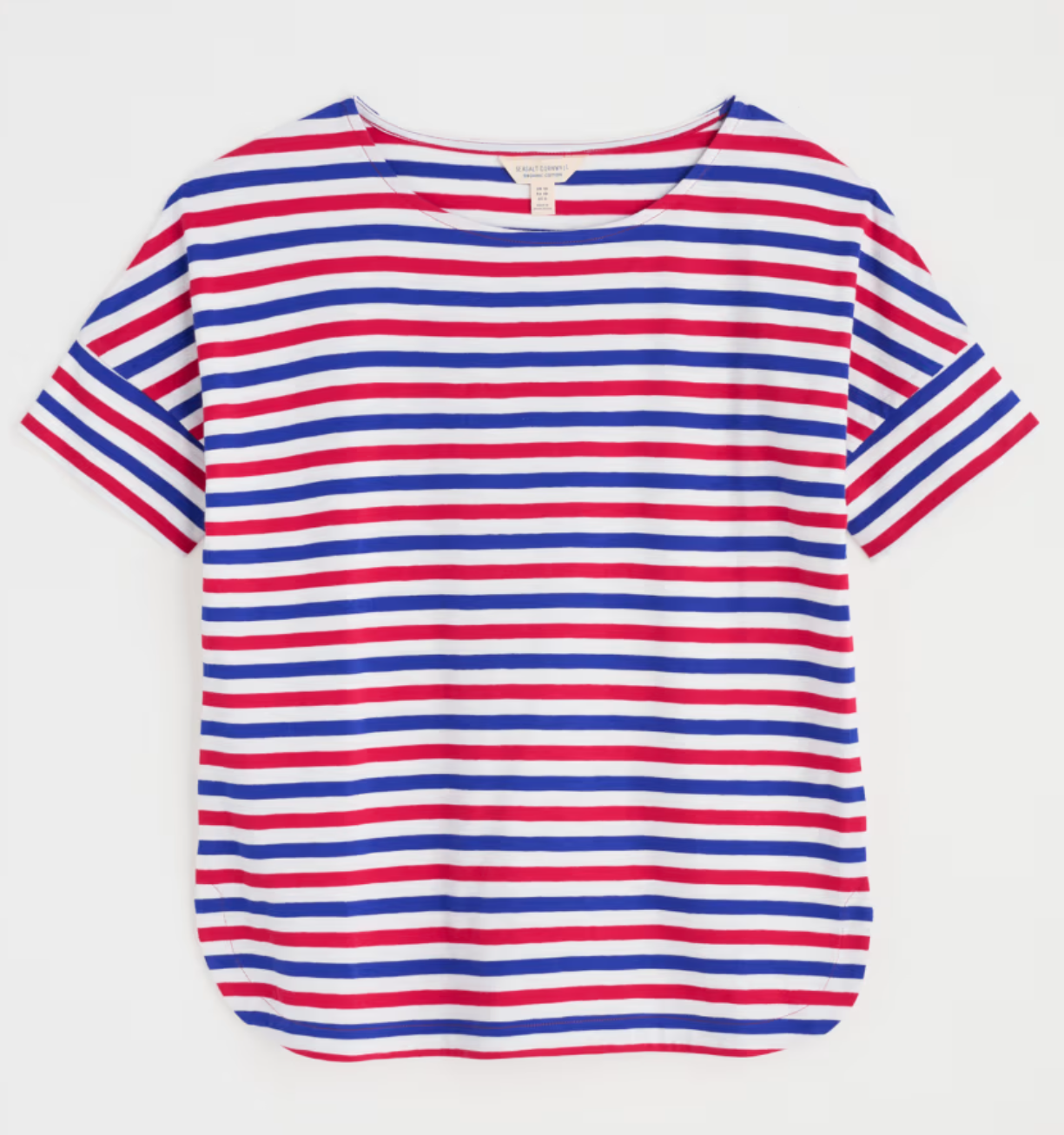 This Seasalt Bryher View T-shirt is one of our favourites for the summer season. It's made from organic cotton in perfect summer colours. The curved hem makes it perfect for wearing untucked.