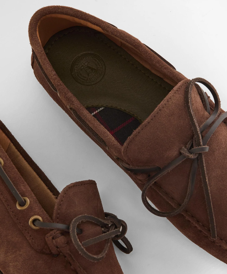 The Barbour Courage Driving Shoes are a great addition to your footwear collection for the summer months. Crafted from 100% leather, they’re offered in plush suede with contrast stitching, tie-up bows and a flexible outsole to ensure total comfort.