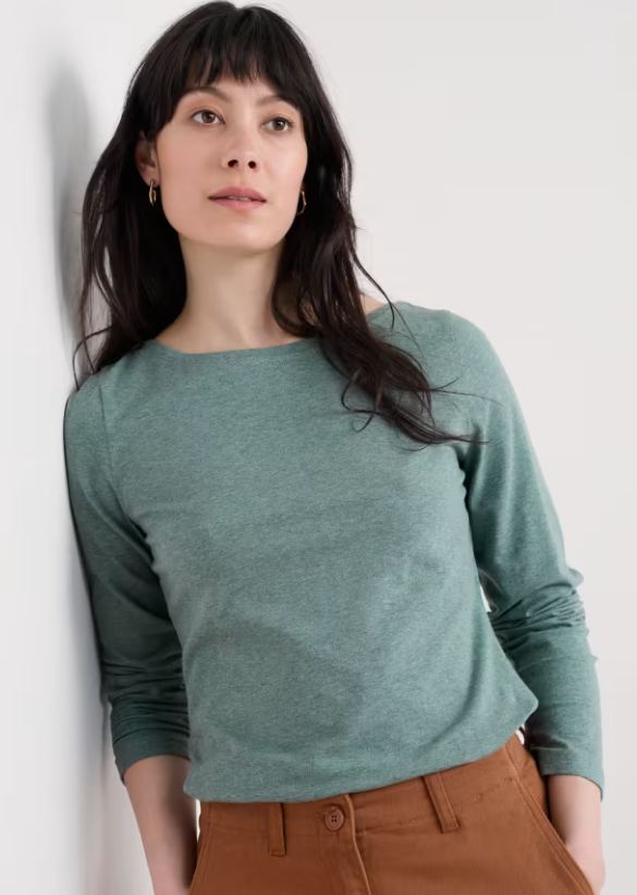 Seasalt's Easel Top is a wardrobe staple that will see you through the seasons. It is made from melange organic cotton jersey with a hint of stretch, which gives it a subtle texture and colour variation and feels beautifully soft against the skin. Perfect for layering, it is designed for a neat fit with a flattering boat neck and long sleeves.