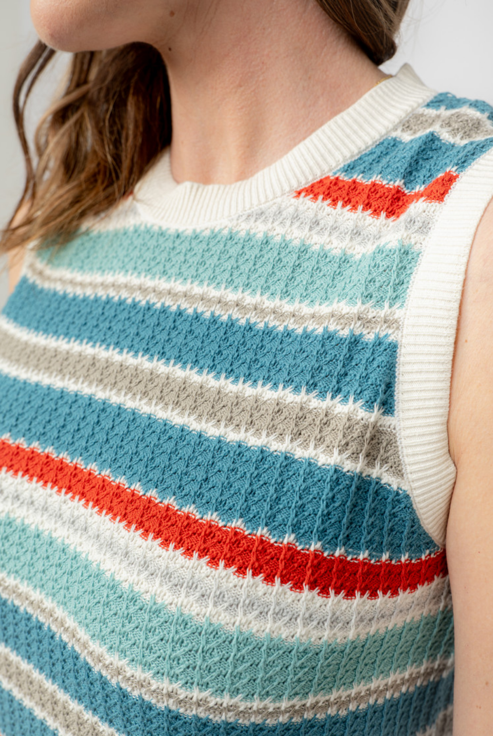 This Lily & Me Eva Striped Tank Top is lightweight with a pretty textured stitch that's perfect for transitional weather. Tonal stripes and an ecru ribbed finish make this tank super wearable with your favourite denim or chinos.