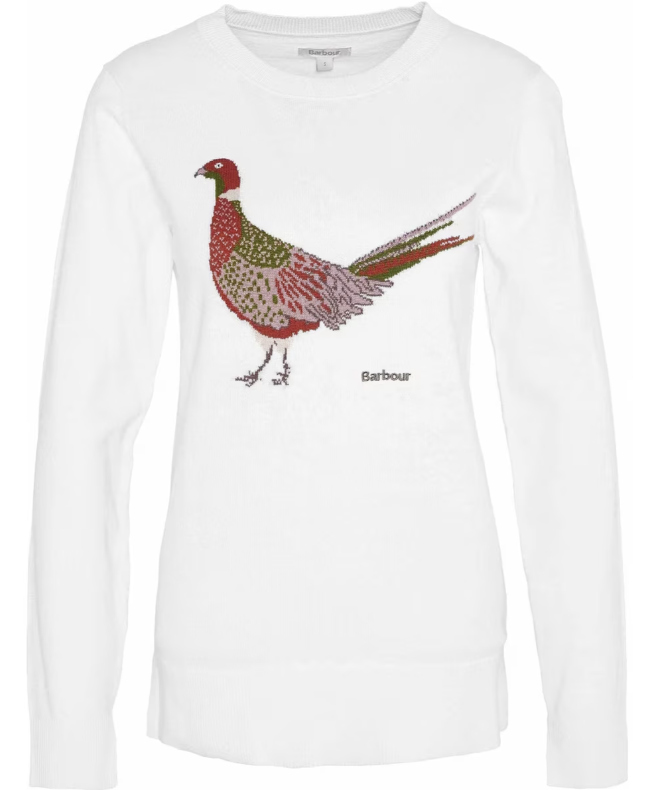 Boasting a classic crew neckline, the Women's Barbour Homeswood Knit is crafted from a cotton and cashmere blend that you are sure to love. Featuring an abstract pheasant intarsia to the chest, indulge in premium craftmanship alongside joyful style.