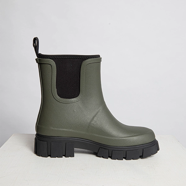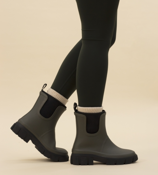 Introducing the Lake olive wellington boot. This stylish boot features a modern chunky sole for a bold look. The elasticated side panels ensure a snug fit as well as easy on-and-off wear. Perfect for rainy days or adding a fashionable twist to your outdoor adventures, these cream wellingtons combine functionality with a trendy design. Embrace the elements in this must-have welly. From the Lazy Dogz range