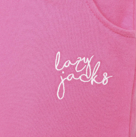 A Lazy Jacks pair of hard wearing relaxed jersey sweatshirt shorts made from heavyweight sueded 100% Cotton. With an elasticated and tie waist band in a fabulous sorbet pink colour, they will reach for these shorts again and again. Featuring a unique Lazy Jacks Stitch designed in house in Lazy Jack's home town of Devon.