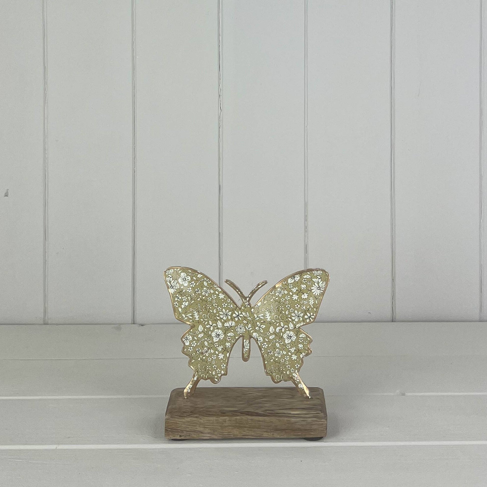 This green metal butterfly on a wooden base is a great item to add to your home, or even a great gift for that special someone in your life.