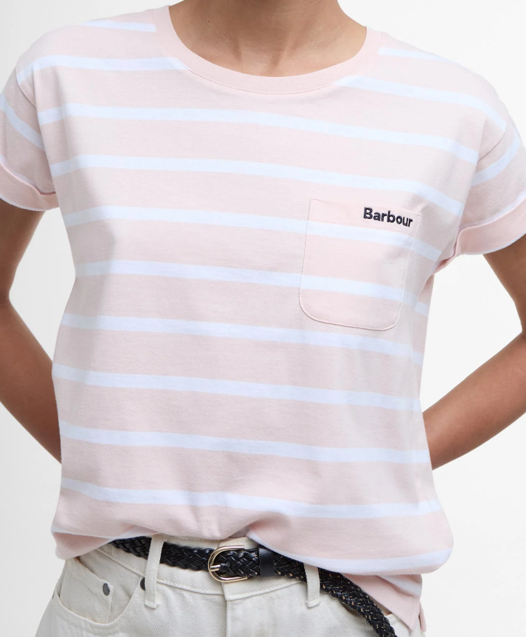 The Barbour Otterburn Striped T-shirt is a staple for your summer wardrobe. We love its light primrose pink colour and its soft cotton feel