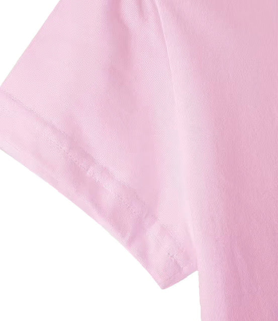 Choice of light grey or light pink in colour with crew neck and short sleeves