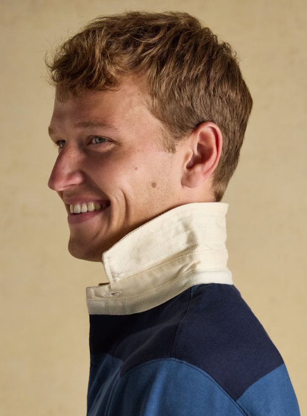This Joules Blue Stripe Rugby Shirt is one of our favourites. This shirt has a preppy yet sporty look. It features the hallmarks of a traditional rugby shirt including a heavyweight cotton jersey construction, a concealed placket with rubber buttons, a pointed twill collar with undercollar stitching and wide horizontal stripes.