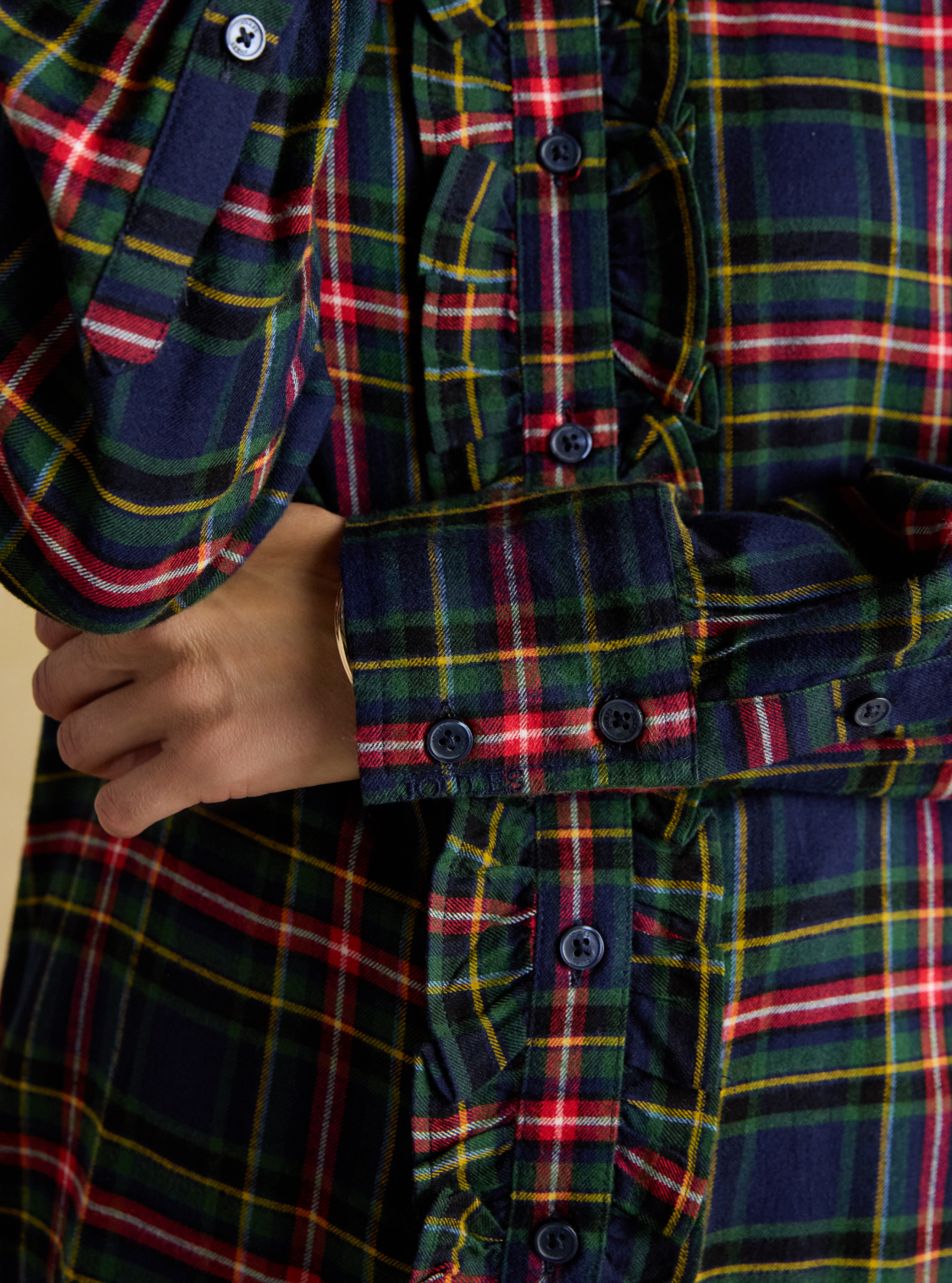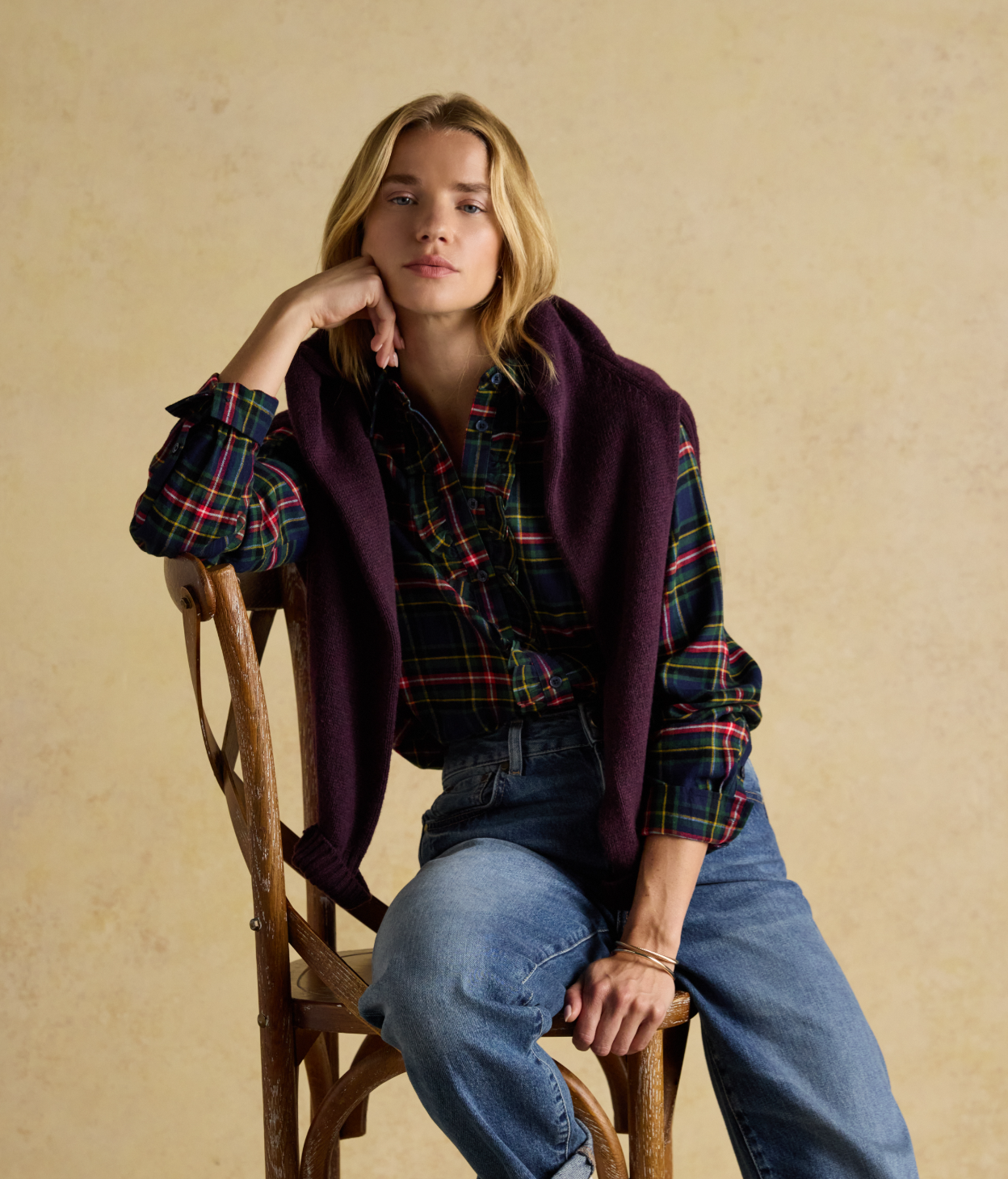The Joules Selene Brushed Shirt is the perfect shirt for autumn winter this year. The design is borrowed from the boys and will sit slightly more relaxed on your silhouette. With a frilled front and a classic tartan style and colour, its a perfect shirt for this season!