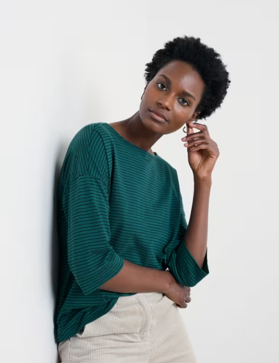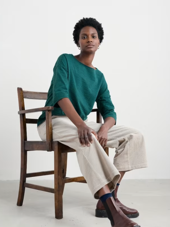 This Seasalt Tremayne Quay Top is made with GOTS certified organic cotton jersey, this simple, laid-back top has a boat neckline, dropped half sleeves and slightly curved hem. Try tucking into skirts, layering under pinafores or styling with trousers.