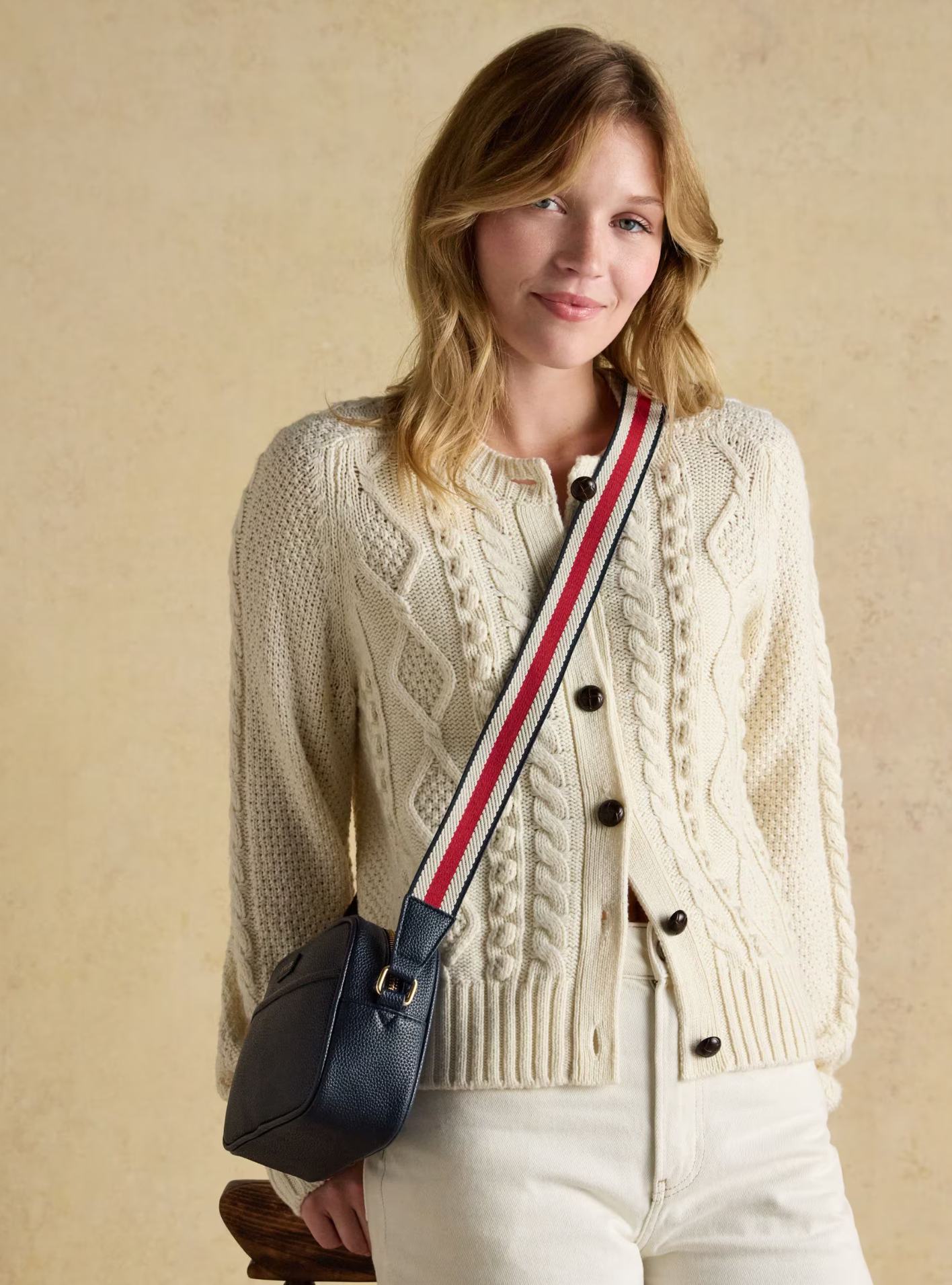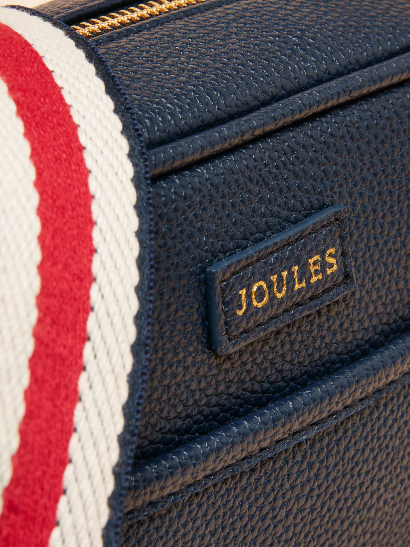 The contrasting webbing cross-body strap is adjustable so you can tailor the length and is fixed by two metal loops. Inside, there's plenty of space for your essentials, along with a slip-in pocket to separate smaller items. It's finished with Joules branding on the front.