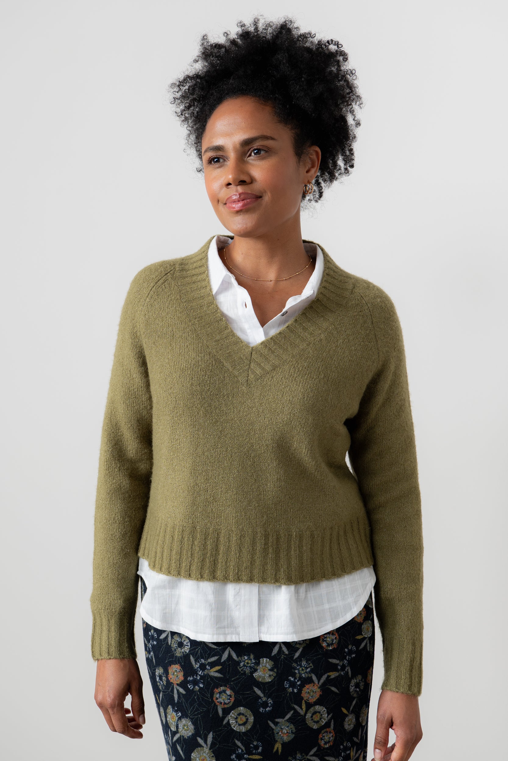 This Lily & Me Woodchester Boxy Knit Jumper is a boxy, v-neck jumper in a blended yarn with a touch of alpaca for a soft handfeel.