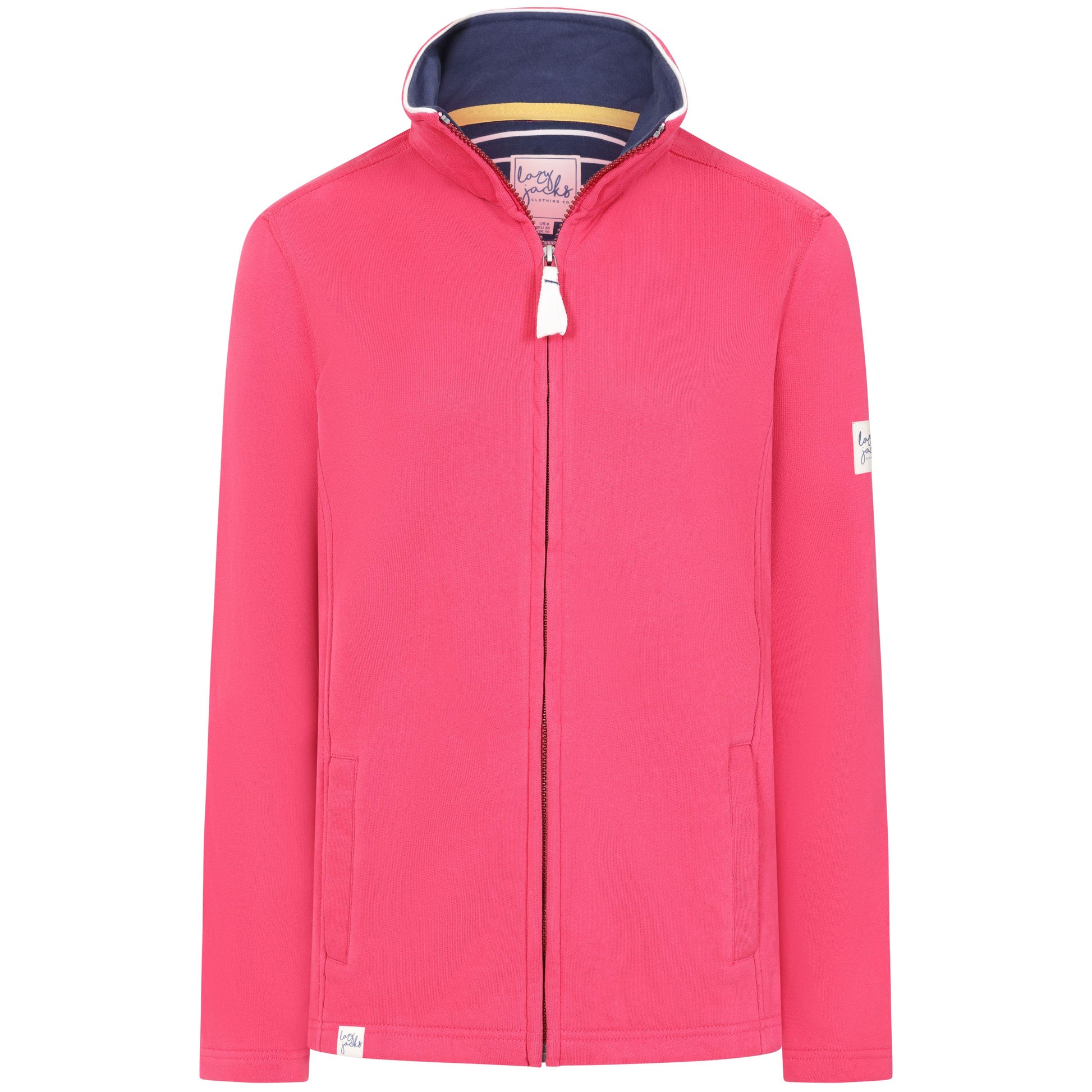 Lazy Jacks are well known for their quality summer wear and this Ladies Zip Through Cherry Sweatshirt is no exception. With thick quality cotton and in a cherry colour, this is the perfect sweatshirt for the upcoming season.